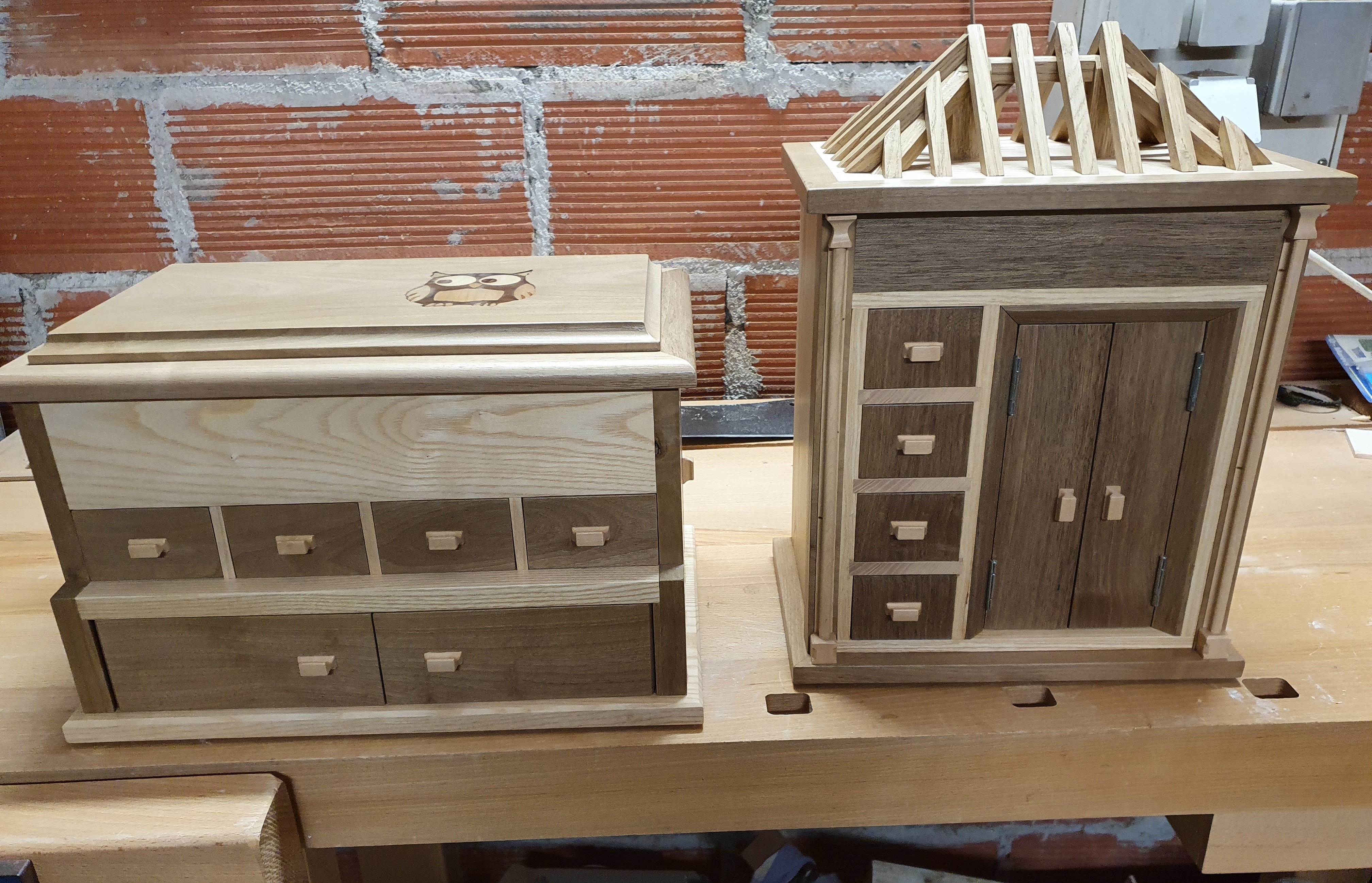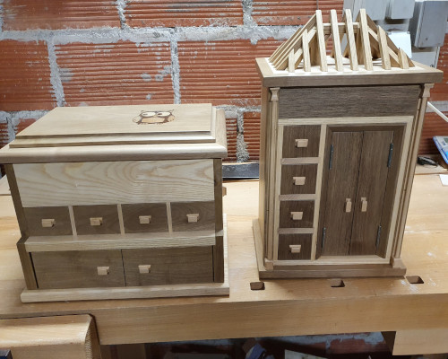 Mes créations vont de la bibliothèque à la boîte à bijoux en passant par la rénovation de cantonnière en bois et plâtre.